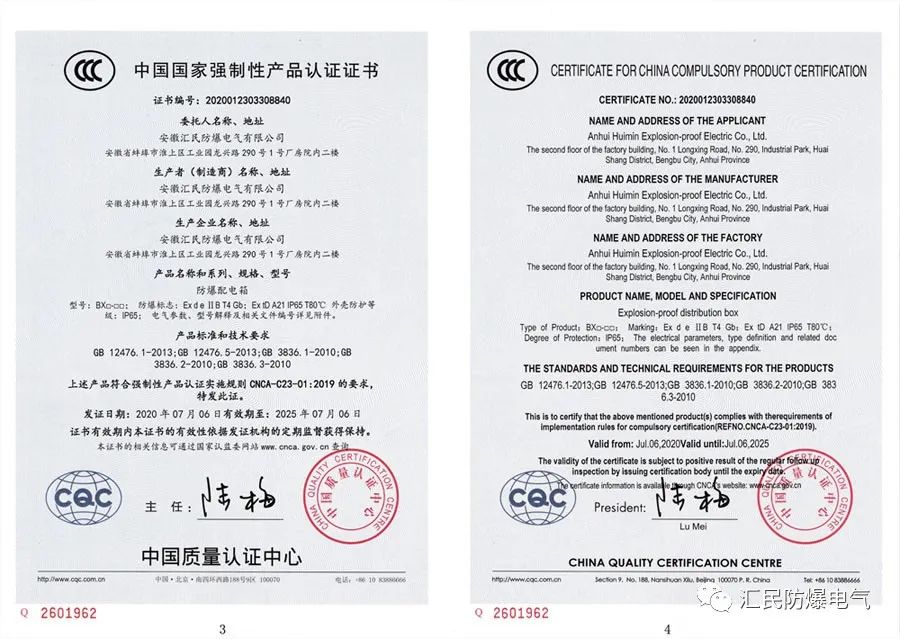 防爆合格證,3C強制產品認證證書,ISO9001質量管理體系認證證書。